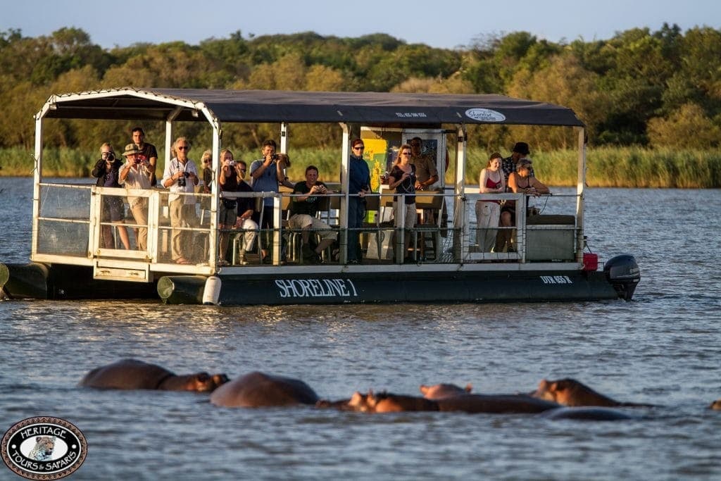 Durante este emocionante safari acuático de aproximadamente 2 horas, tendrás la oportunidad de avistar hipopótamos y cocodrilos mientras recorres cerca de 8 km hacia el norte por el Estuario, ubicado dentro del Parque de Humedales iSimangaliso, el primer sitio de patrimonio mundial de Sudáfrica.
